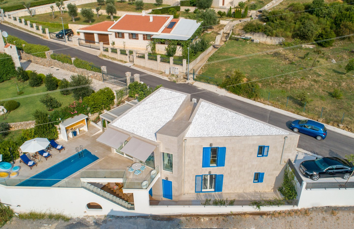 Вилла окружена соседними эксклюзивными большими виллами, а главная дорога через поселок полностью отремонтирована, проложена в 2019 году. Вилла окружена горным массивом с северной стороны, покрыта средиземноморской растительностью, а с южной стороны открывается потрясающий вид на море и Будванскую Ривьеру — от Свети-Стефана, вплоть до пляжа Могрен.
