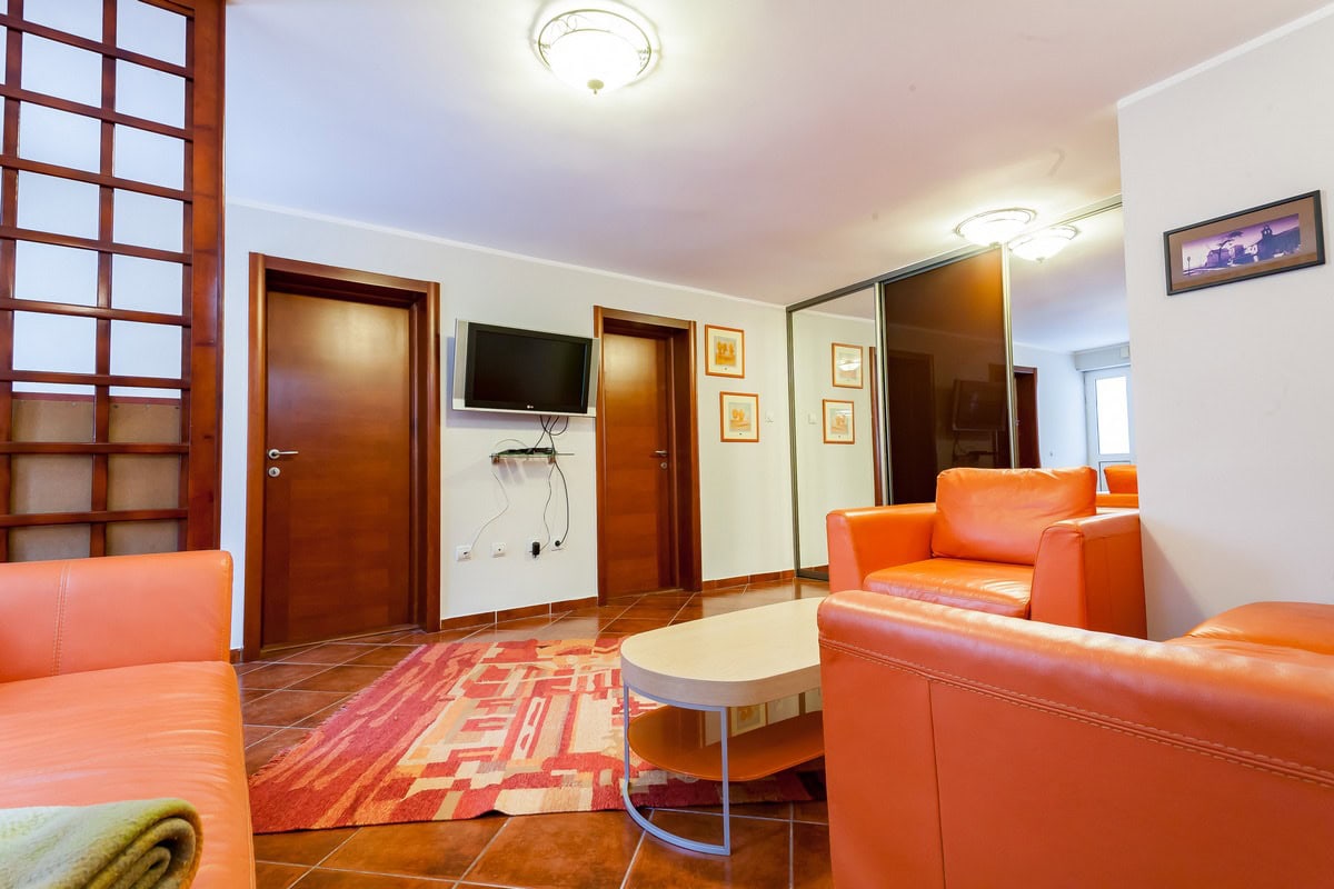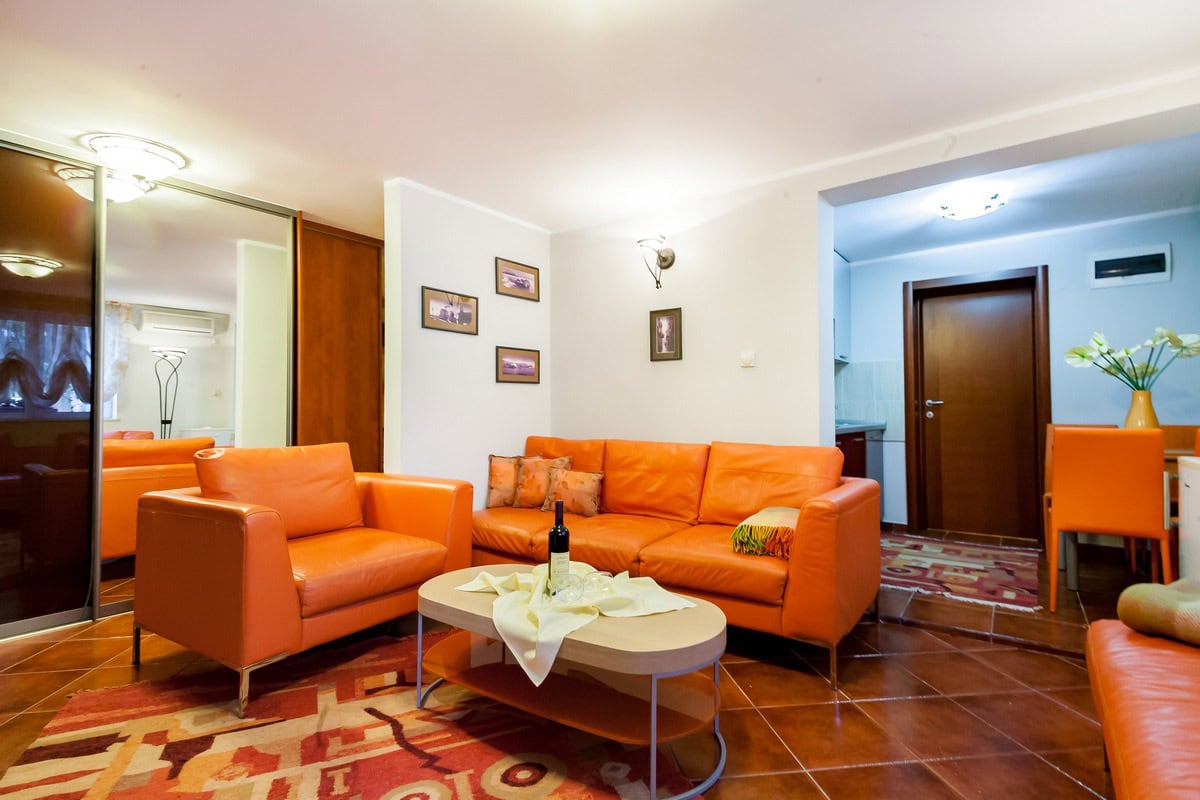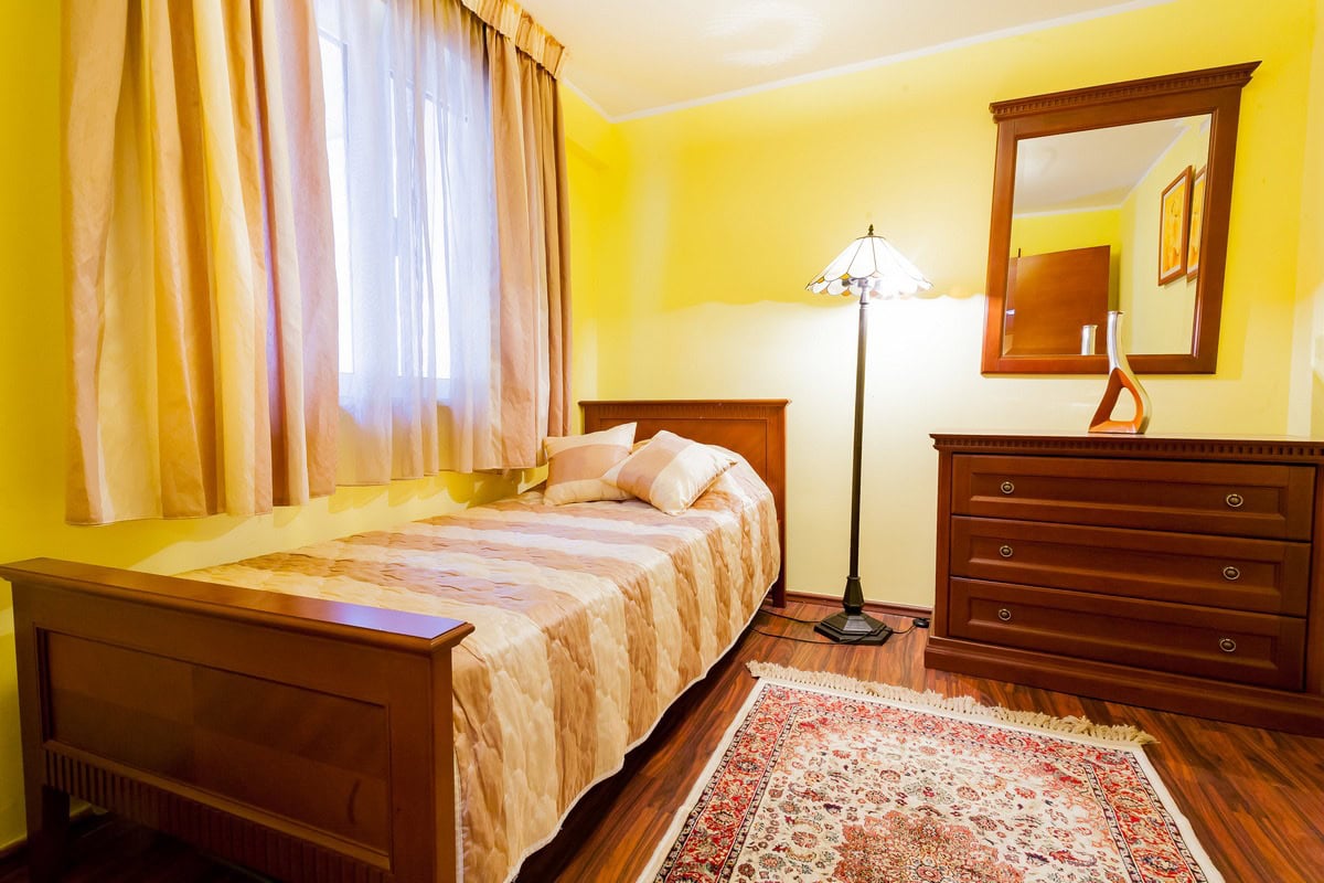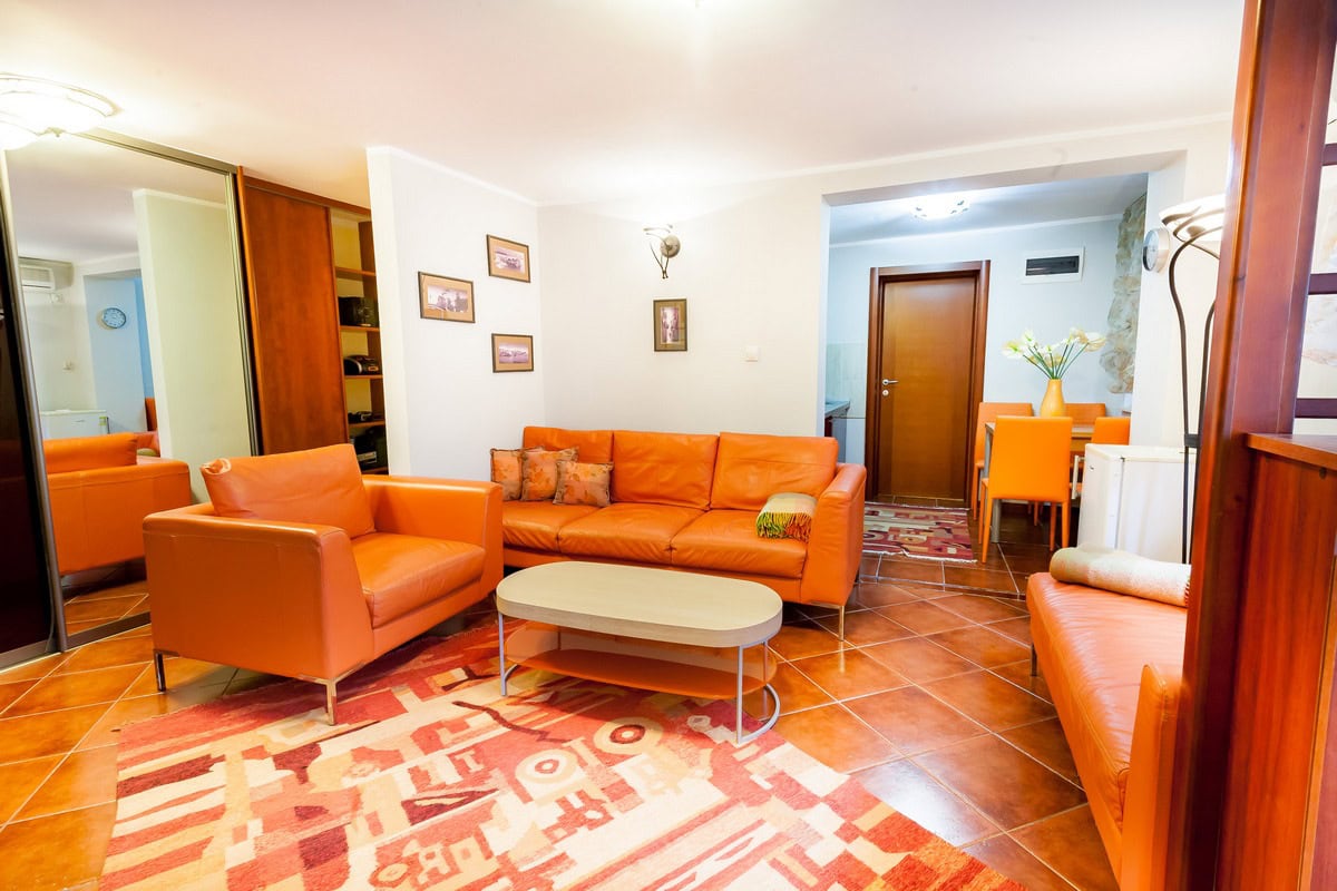 В квартире на первом этаже три спальни, а в квартире на втором этаже две спальни, оба апартомента роскошно оборудованы, без обременений и ограничений.