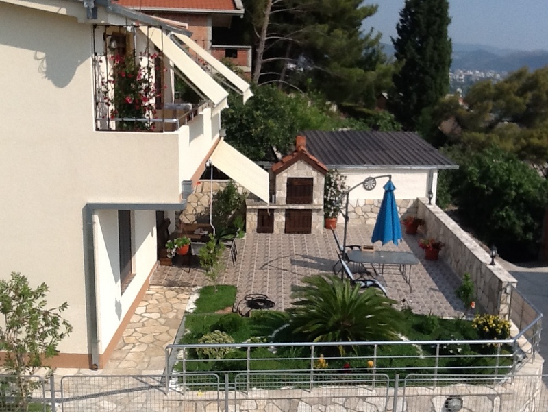 Продаётся дом в Шушани, в зеленой зоне. На первом этаже: кухня-гостиная, спальня и ванная комната. На втором этаже 3 спальни и ванная комната. Участок 200м2 с садовыми деревьями и барбекю. Есть гараж на два парковочных места. До моря 7 минут пешком.