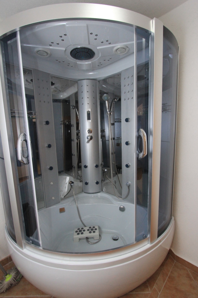 На первом этаже есть гостиная, кухня с столовой, 2 спальные комнаты и 2 санузла (один из их имеет сауну).