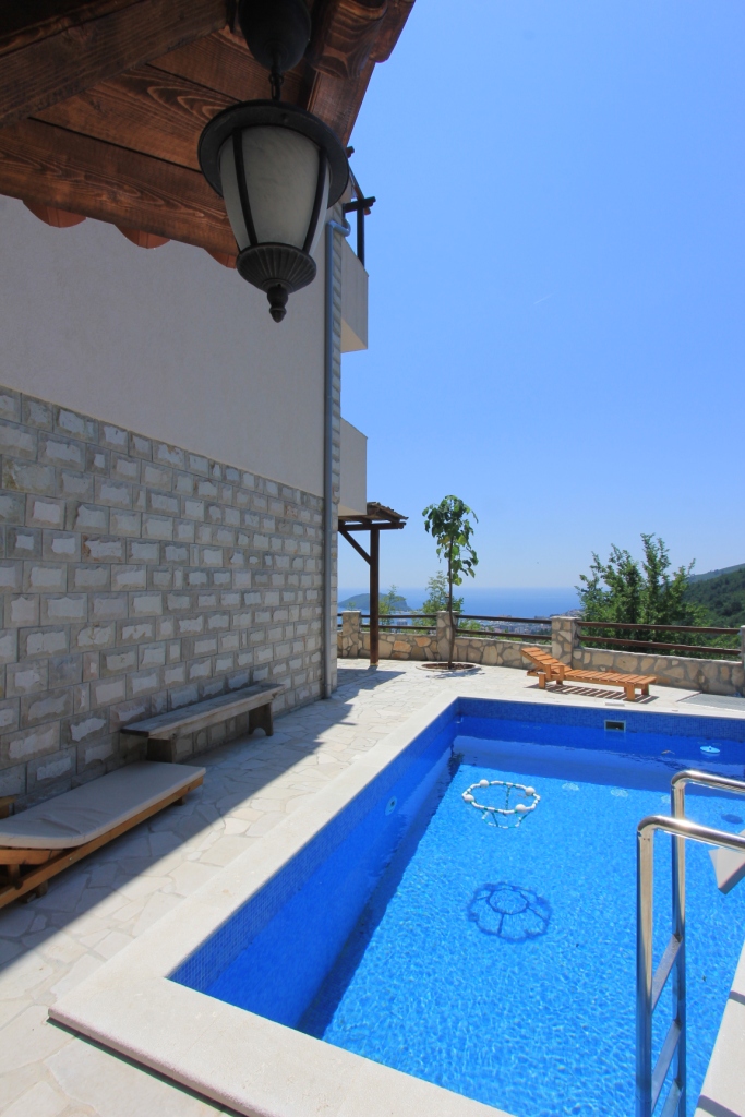 В тихом районе Будвы, удаленном в 1,5 км от центра города, продается прекрасная вила с потрясающим видом на море и всю Будву.