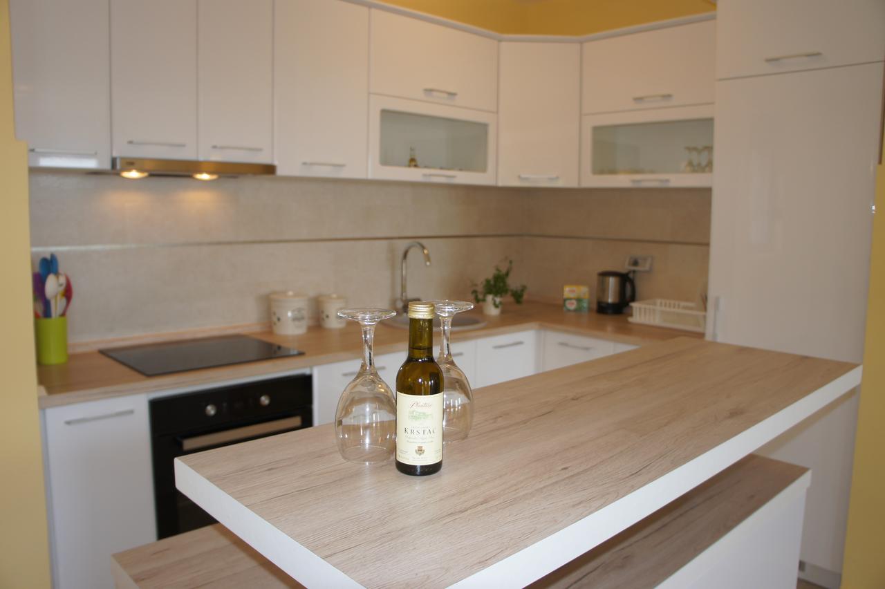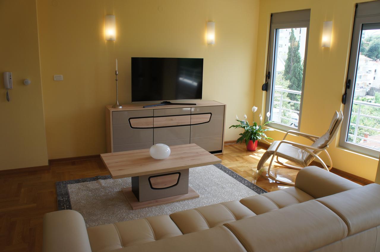 Просторная, полностью меблированная и оборудованная трехкомнатная квартира в курортном районе Бечичи. Расположена в новом жилом доме, высокое качество строительства. Квартира площадью 100 м2 состоит из двух спален, двух ванных комнат, в одной из которых имеется ванная с джакузи, гостиной, объединенной с кухонной зоной и трех террас. Прекрасный вид на море открывается из всех комнат.