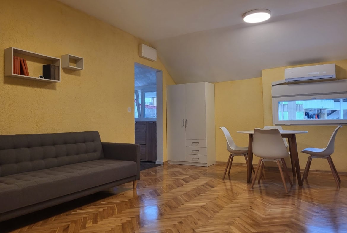Предлагается к продаже уютная квартира в курортном городе Будва, идеально подходящая как для личного проживания, так и для отдыха. Расположенная на третьем этаже трёхэтажного дома, квартира обладает общей площадью 60 м² и дополнительным пространством для хранения вещей площадью 6 м² на нулевом этаже.