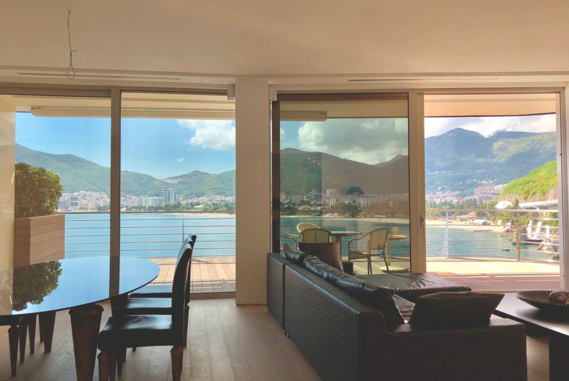 Окна квартиры выходят на море, позволяя наслаждаться восхитительными видами побережья.