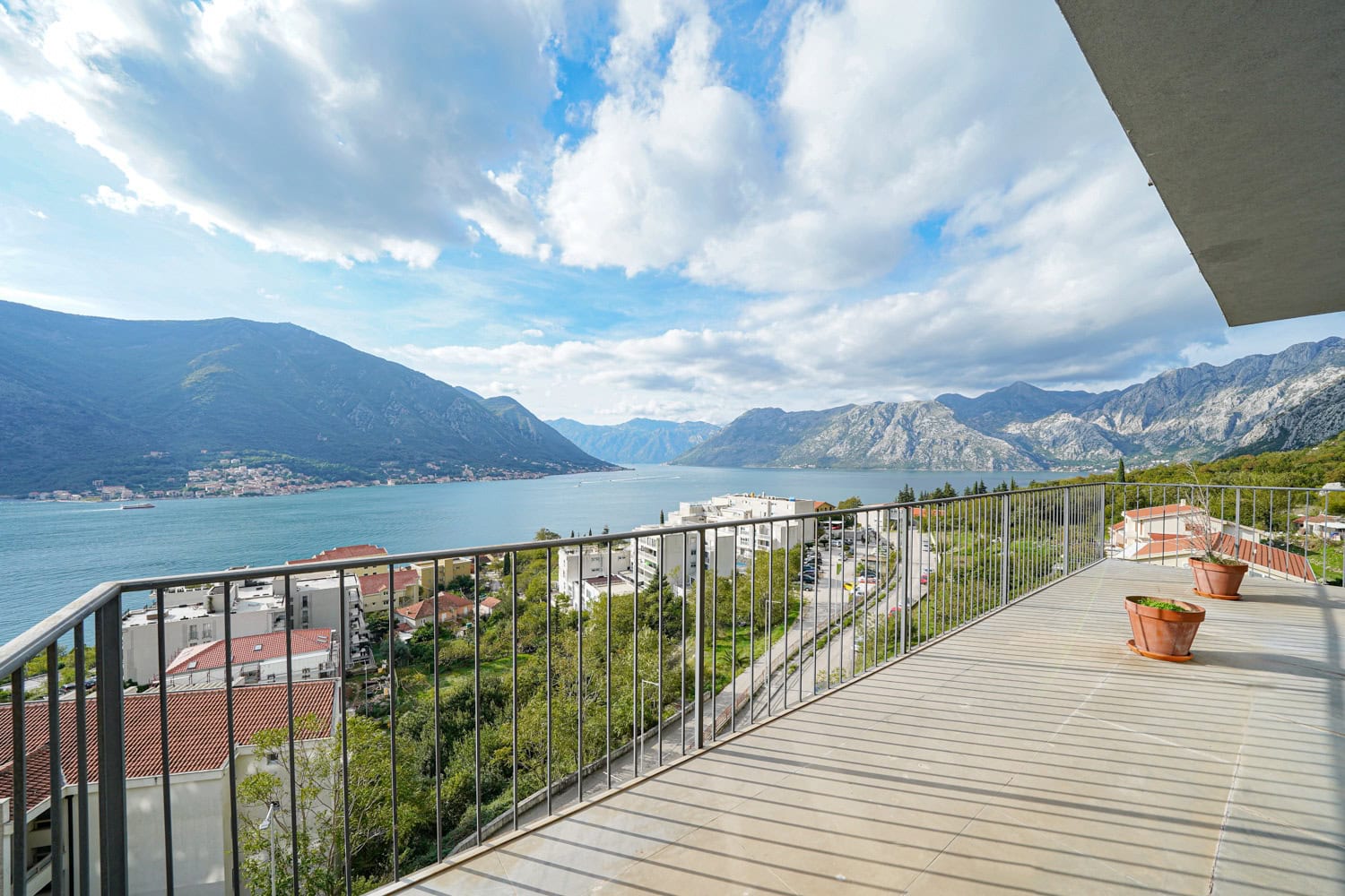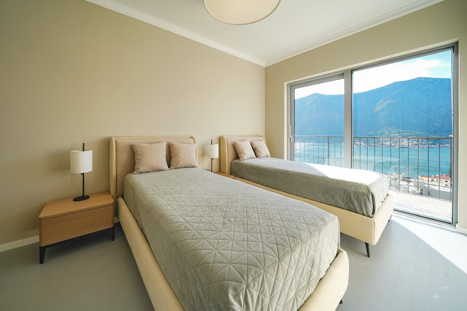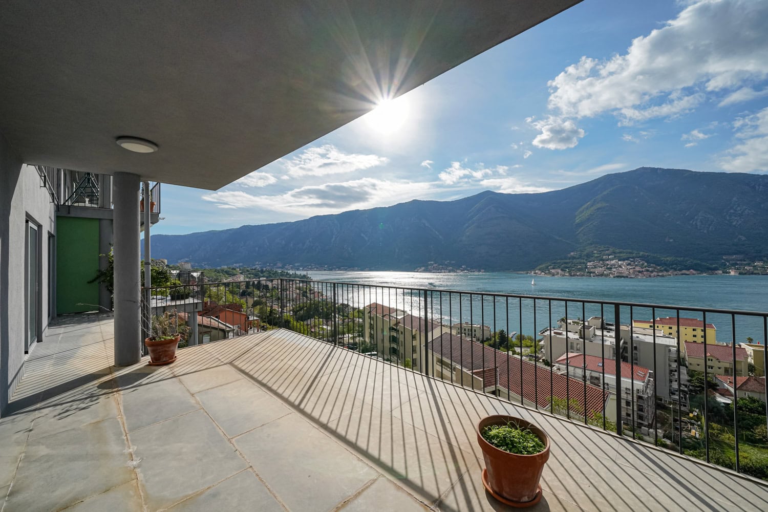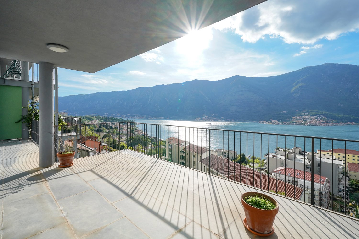 Эта эксклюзивная квартира площадью 158 м² расположена на третьем этаже современного дома и предлагает панорамные виды на бескрайние воды Которского залива — настоящего шедевра природы, охраняемого ЮНЕСКО. Из каждой комнаты перед вами открывается завораживающая картина бирюзовой глади моря и горных вершин.