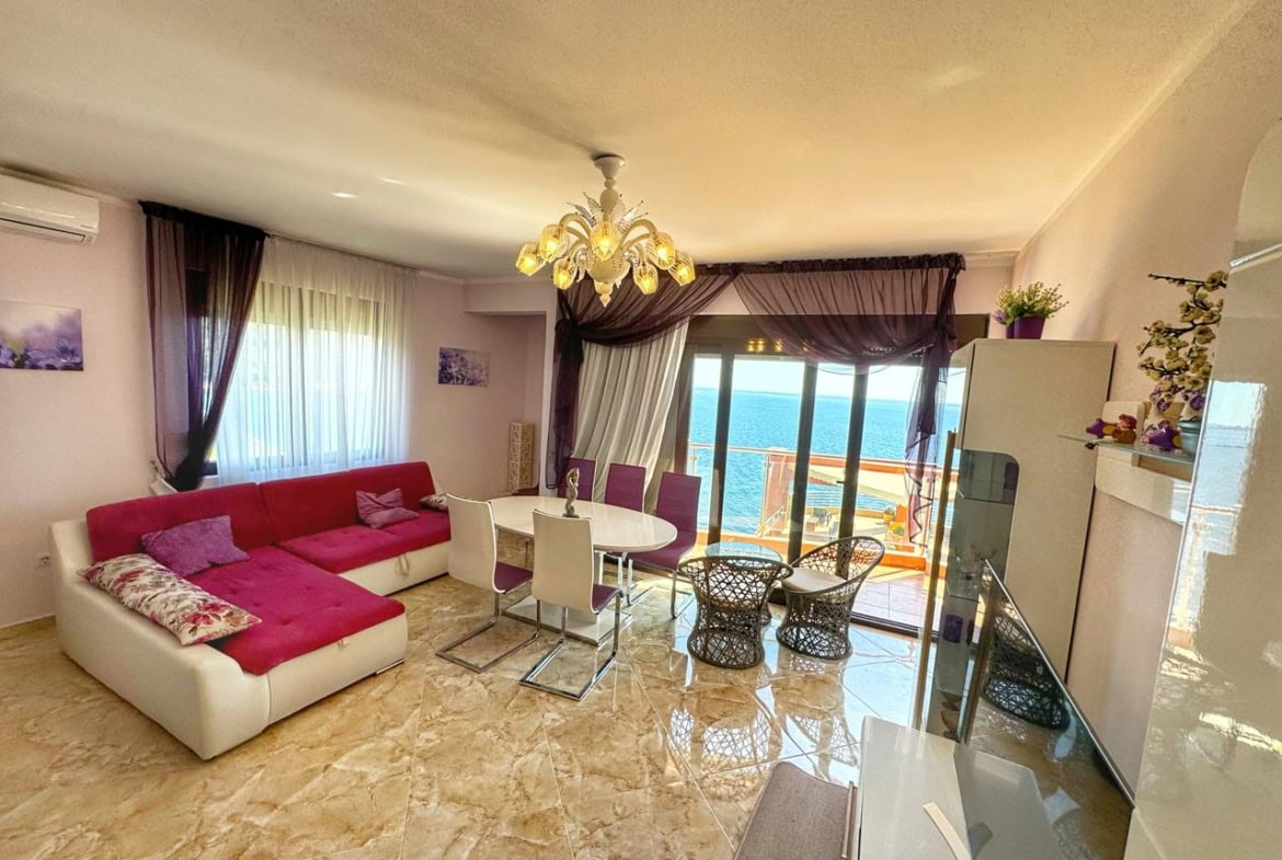 Предлагается к продаже стильная квартира с двумя спальнями в жилом комплексе, расположенном на первой линии моря в живописном поселке Добра Вода. Апартамент находится на втором этаже верхнего корпуса комплекса, откуда открывается завораживающий панорамный вид на Адриатическое море.
