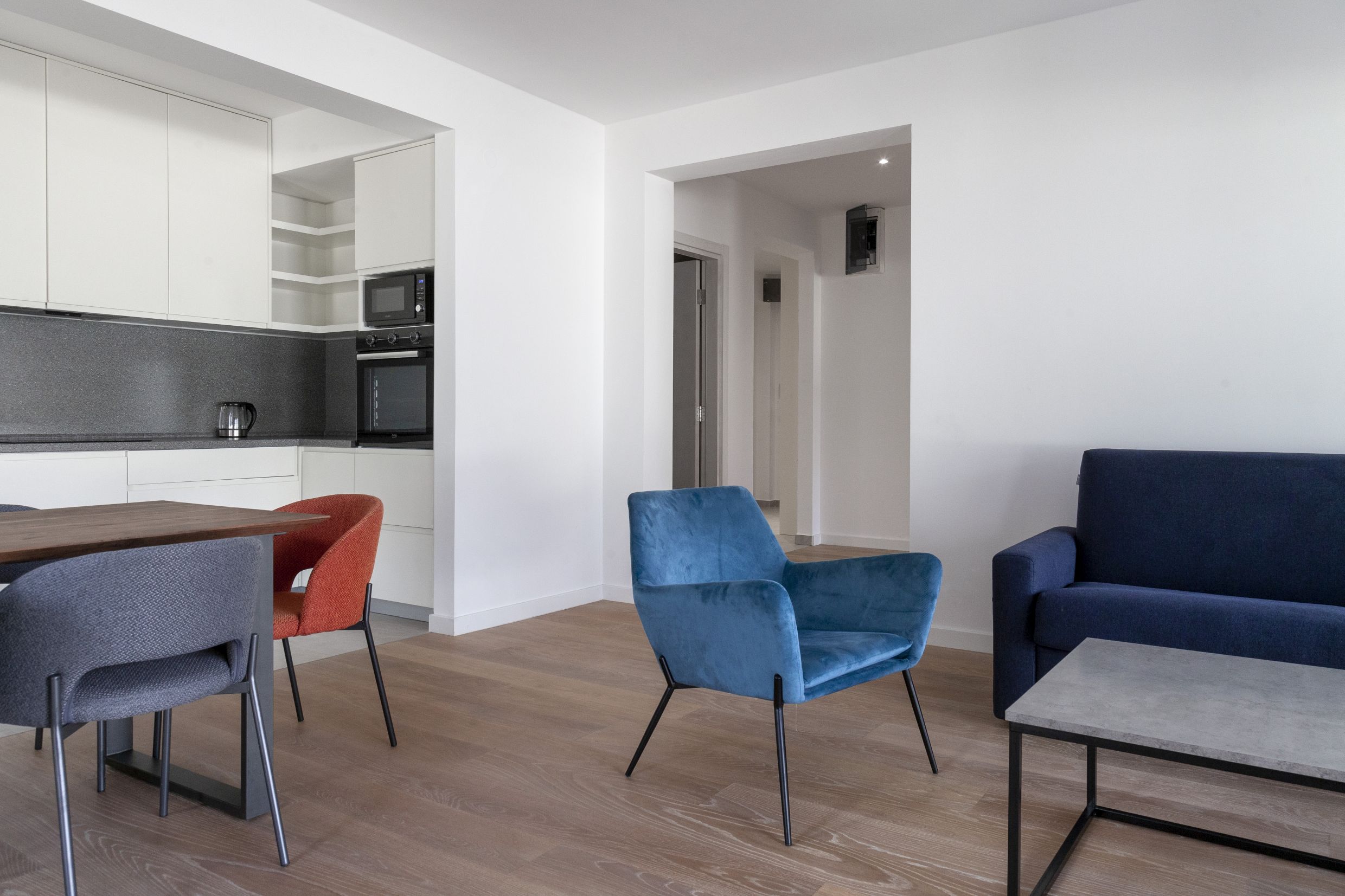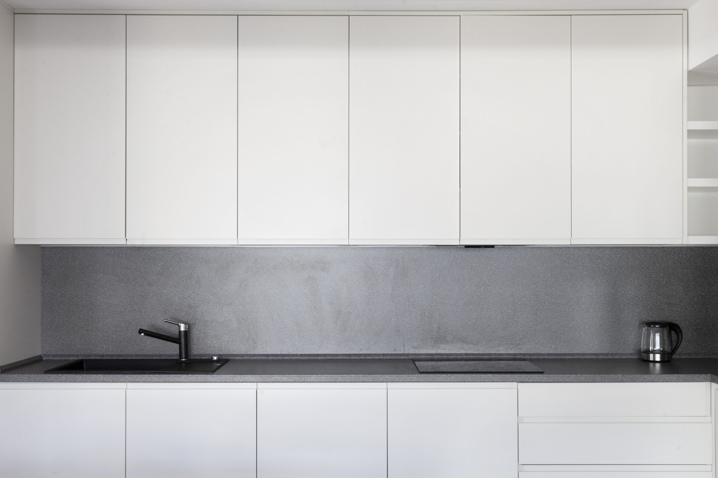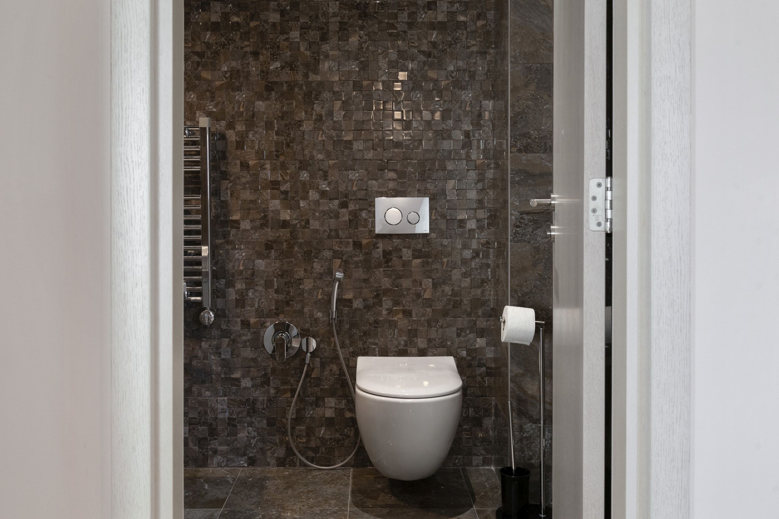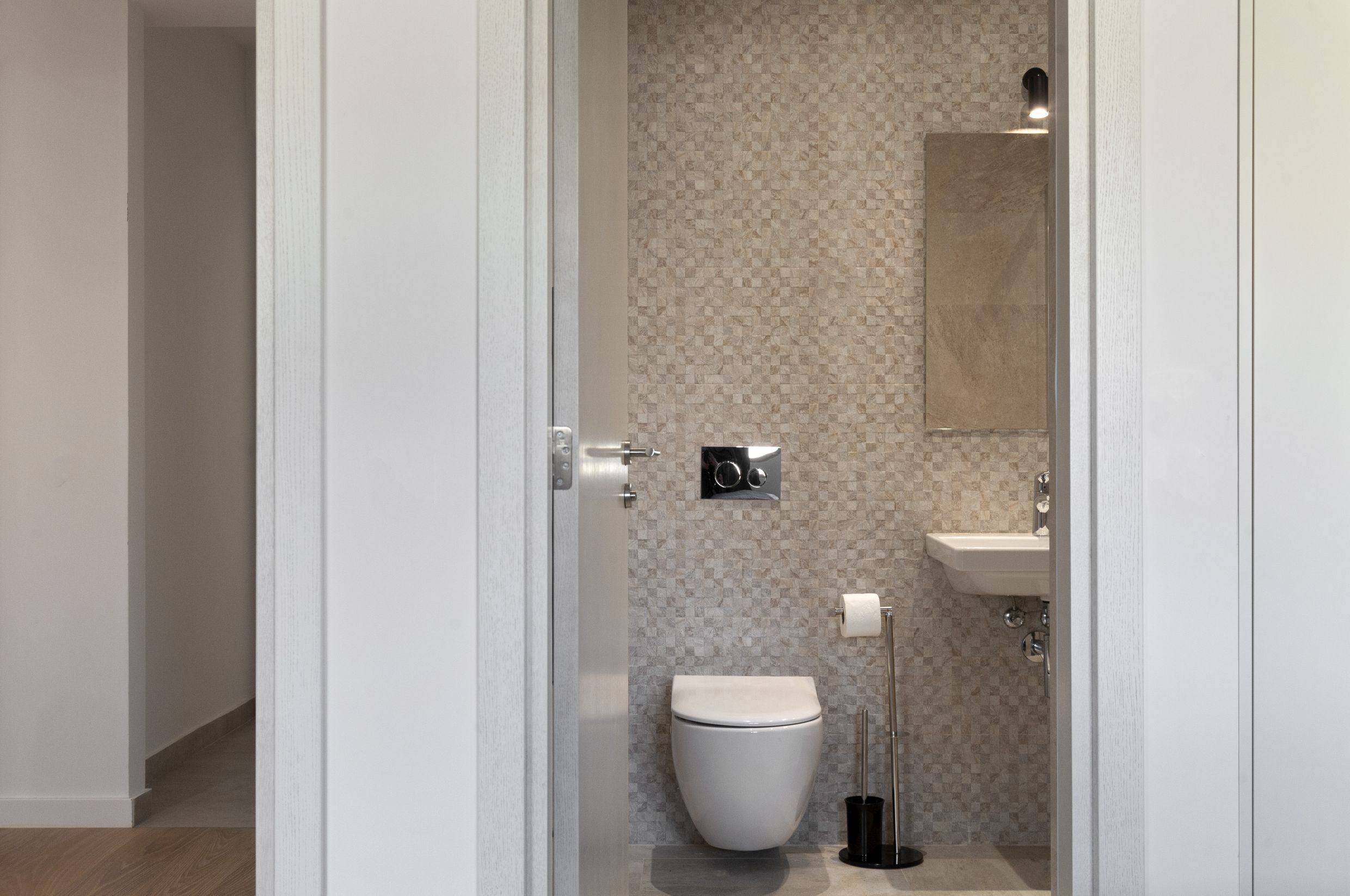 Интерьер выполнен в современном элегантном стиле с использованием нейтральной цветовой гаммы, что позволяет легко адаптировать пространство под индивидуальные предпочтения владельца.