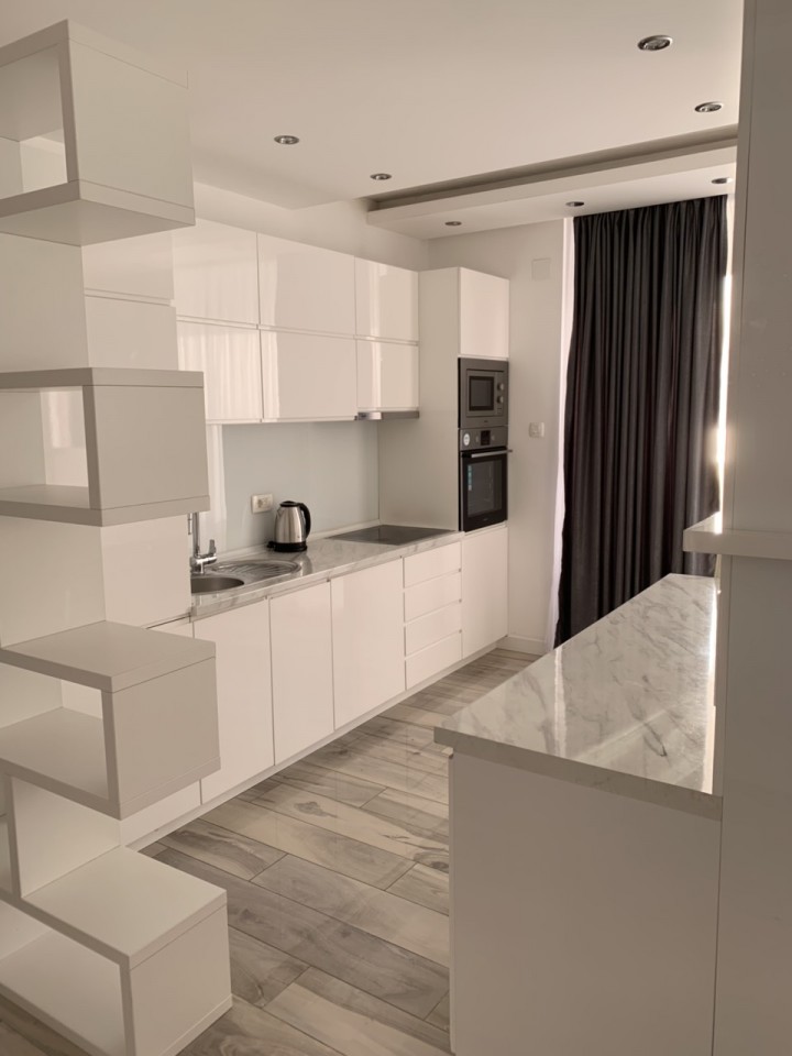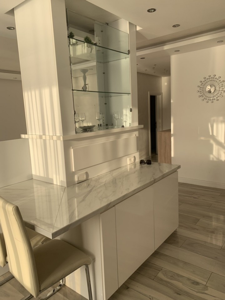 Просторная и стильная квартира на первой береговой линии курортного района Рафаиловичи. Полностью меблированная и оборудованная  квартира площадью 94 м2 состоит из гостиной, совмещенной с кухонной зоной, откуда имеется выход на большую террасу с панорамным видом на море, двух спален и двух ванных комнат. Непосредственно к зданию примыкает променадная зона с многочисленными ресторанами, кафе и магазинами. Так же здесь расположен причал для яхт и катеров.