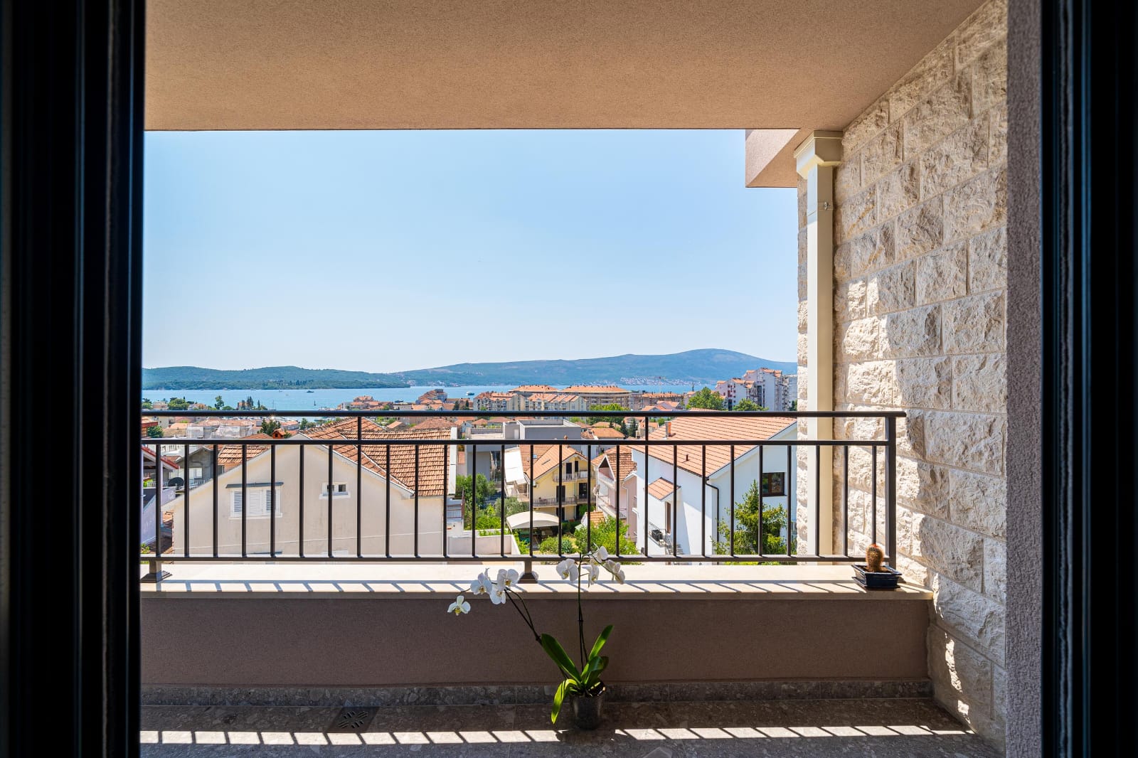 Квартира в самом сердце Тивата — это место, где сливаются комфорт, стиль и вдохновение. Просторная квартира площадью 77 м² расположена в зелёном, спокойном квартале, всего в пяти минутах ходьбы от моря. С террас открываются впечатляющие виды на Тиватский залив — утренний свет, отражающийся в воде, и закаты, окрашивающие горизонт в мягкие золотистые тона, создают атмосферу гармонии и уюта.