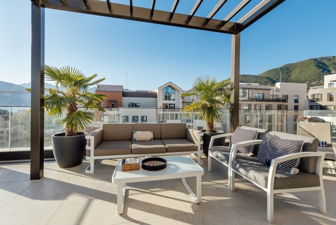 Роскошная квартира: меблированный дуплекс-пентхаус с видом на море и марину Порто Монтенегро — здание Thea, Boka Place в Тивате