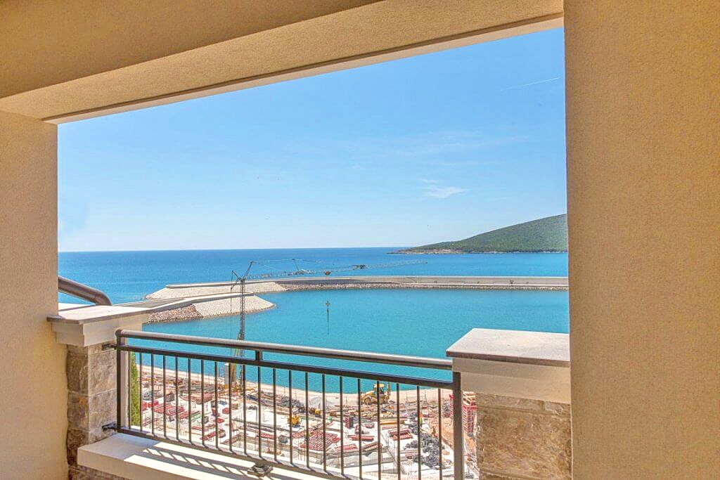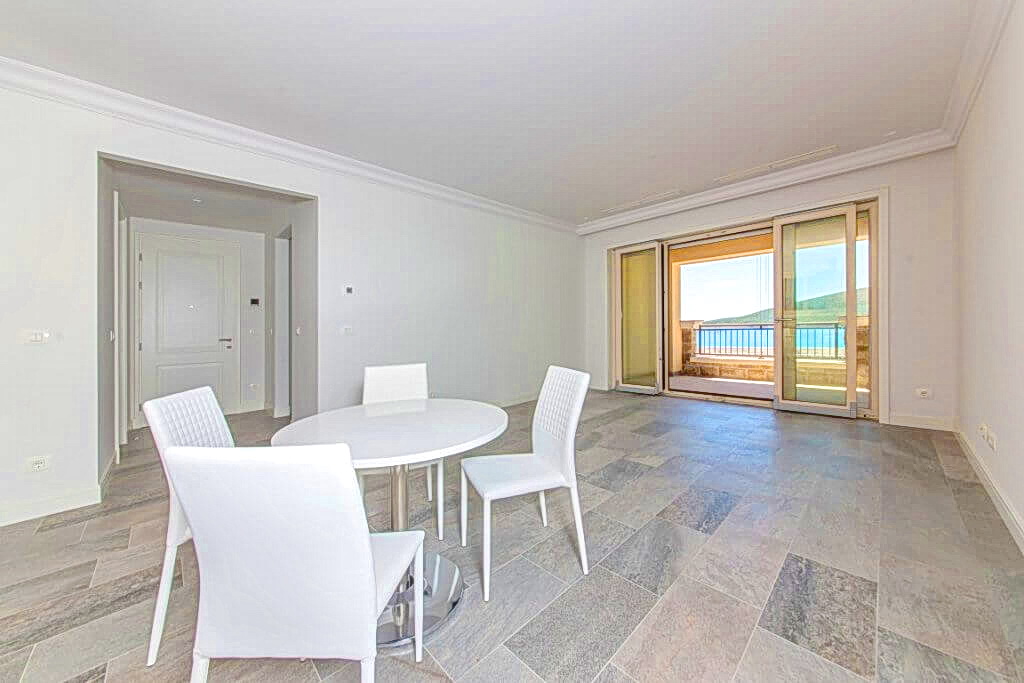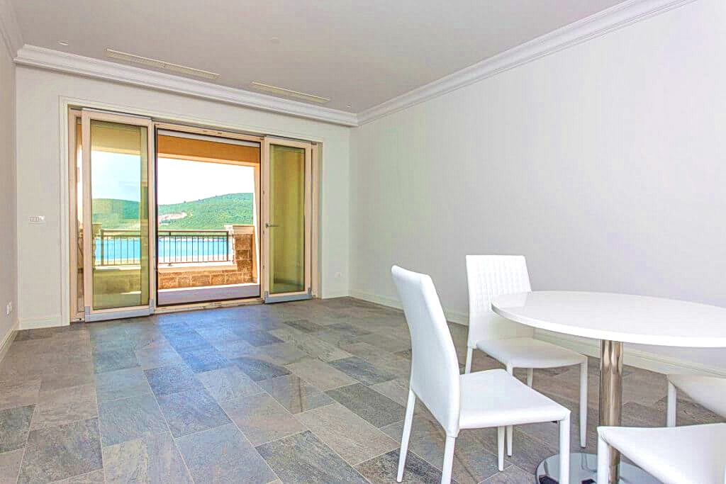 Квартира в комплексе премиум класса на первой линии в комплексе Луштица Бэй. Прекрасный вид на море и пристань для яхт. Квартира состоит из одной спальни с ванной комнатой, большой открытой планировки гостиной с обеденной зоной и кухней, туалета, прихожей и террасы с видом на море.