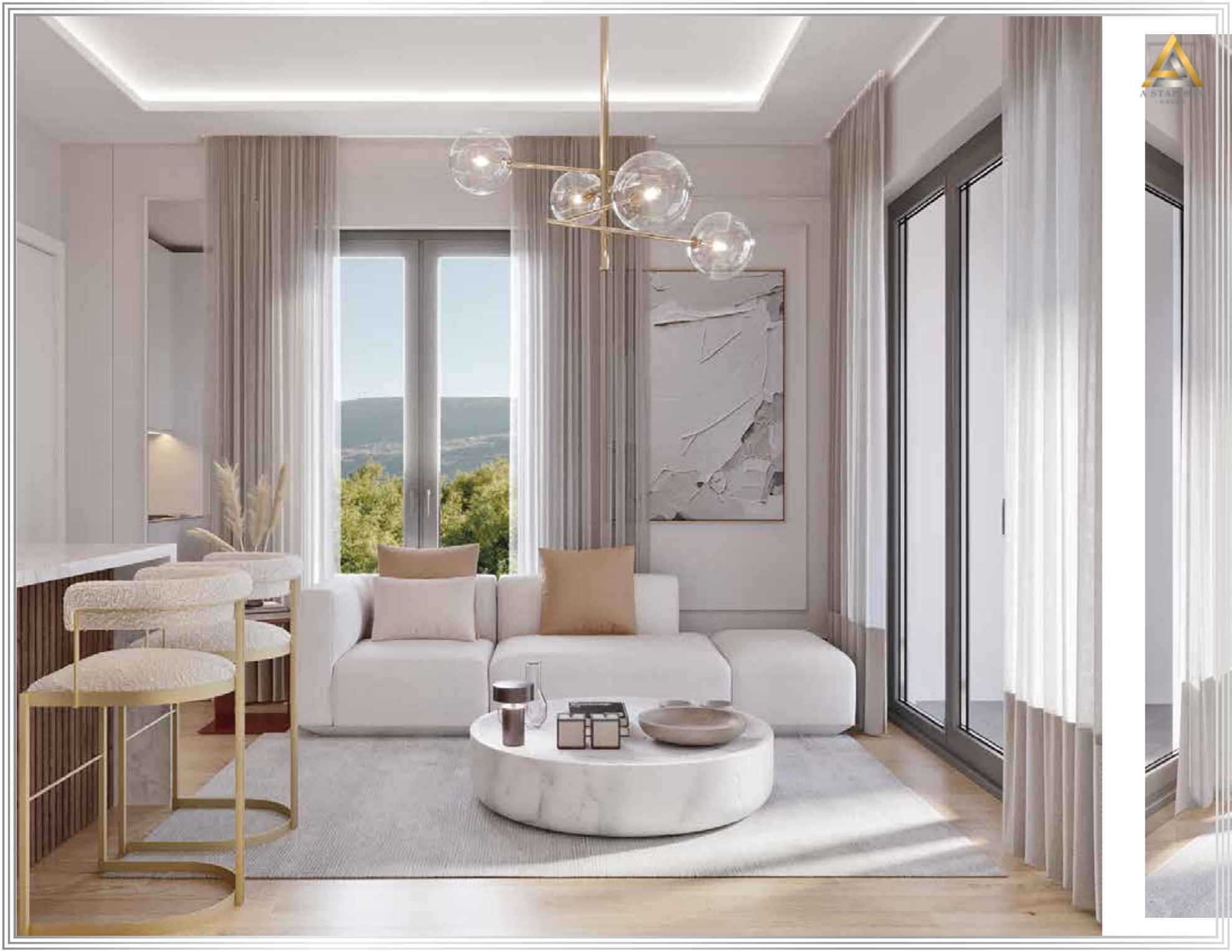 Проект отличает продуманный современный дизайн, высокое качество строительства и уютные светлые интерьеры. В комплексе представлены различные варианты квартир: студии и апартаменты с одной спальней, без террасы и апартаменты с одной спальней, с собственными террасами.