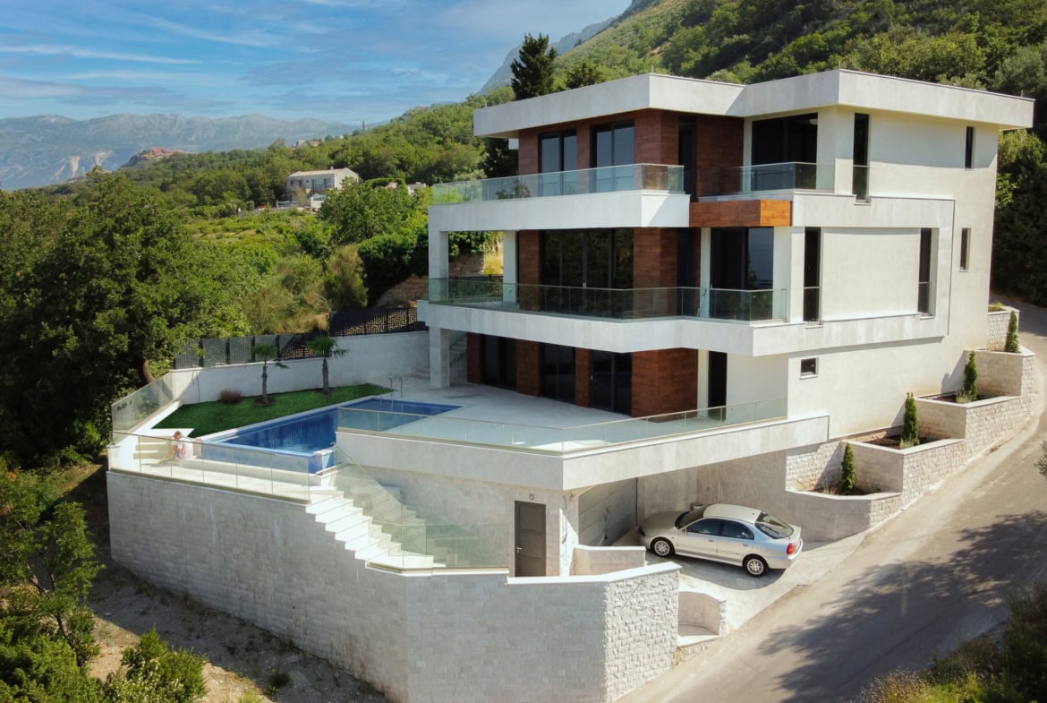 Высота над уровнем моря 85м. Рядом магазин и ресторан 300м. Свети Стефан находится в 2 минутах езды на машине, ближайший город со всей инфраструктурой - Будва в 8 минутах езды. Вилла сдана в эксплуатацию в июле 2021 года.