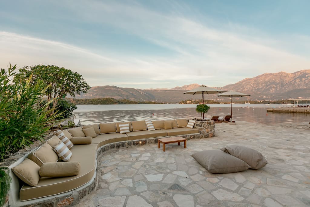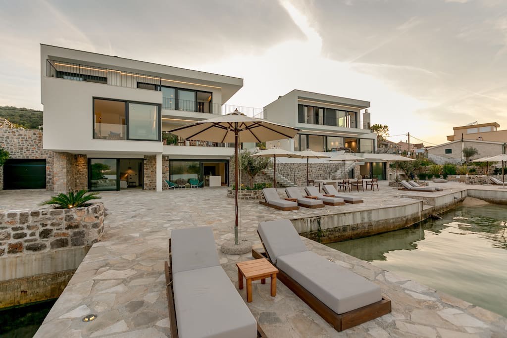 К продаже предлагается эксклюзивная вилла на первой береговой линии с приватным выходом к морю, длиной в 40 метров, расположенная в районе Джурашевичи, муниципалитета города Тиват.