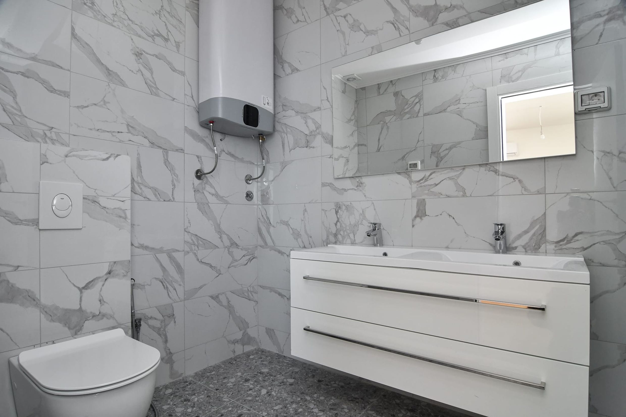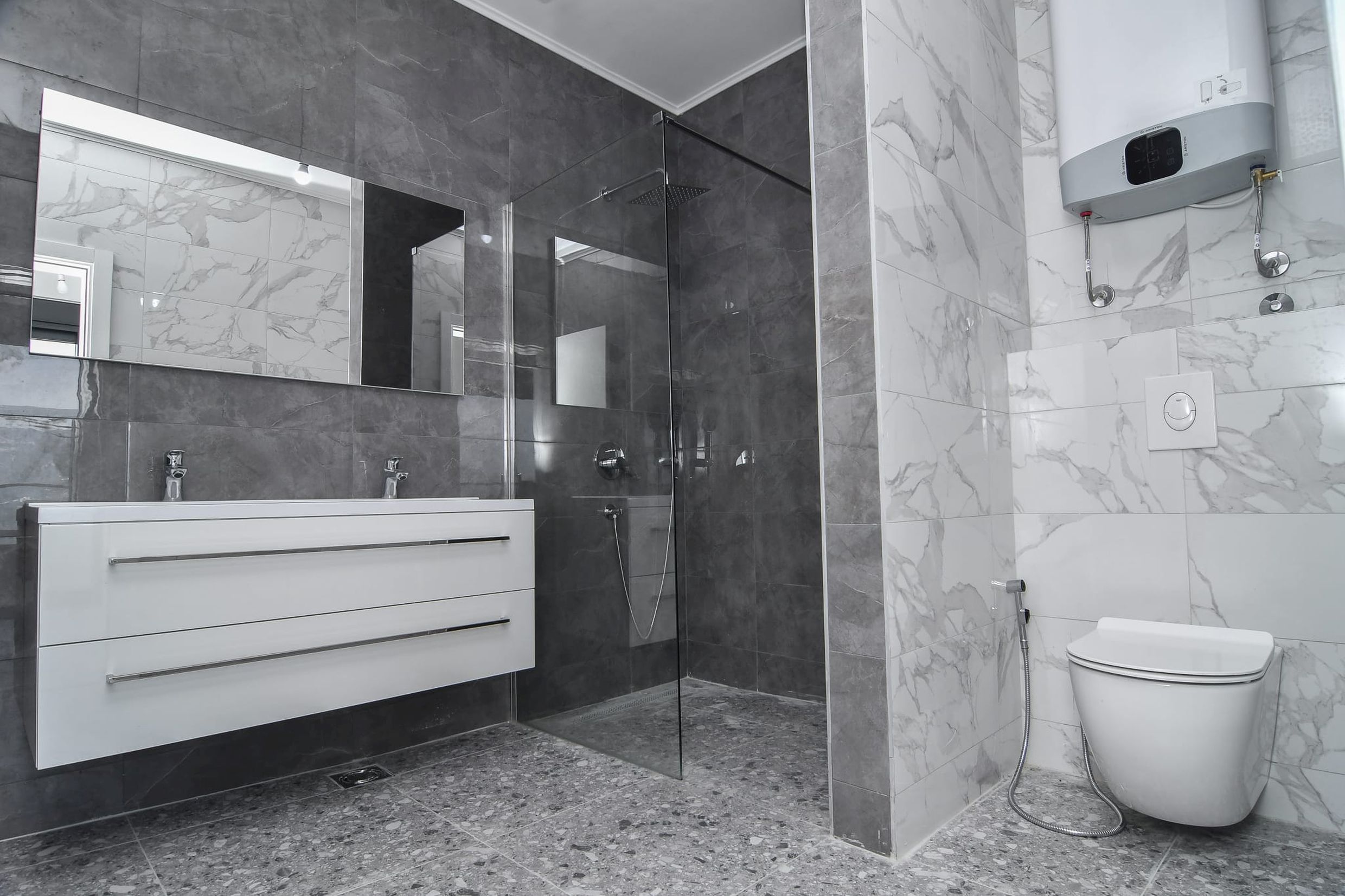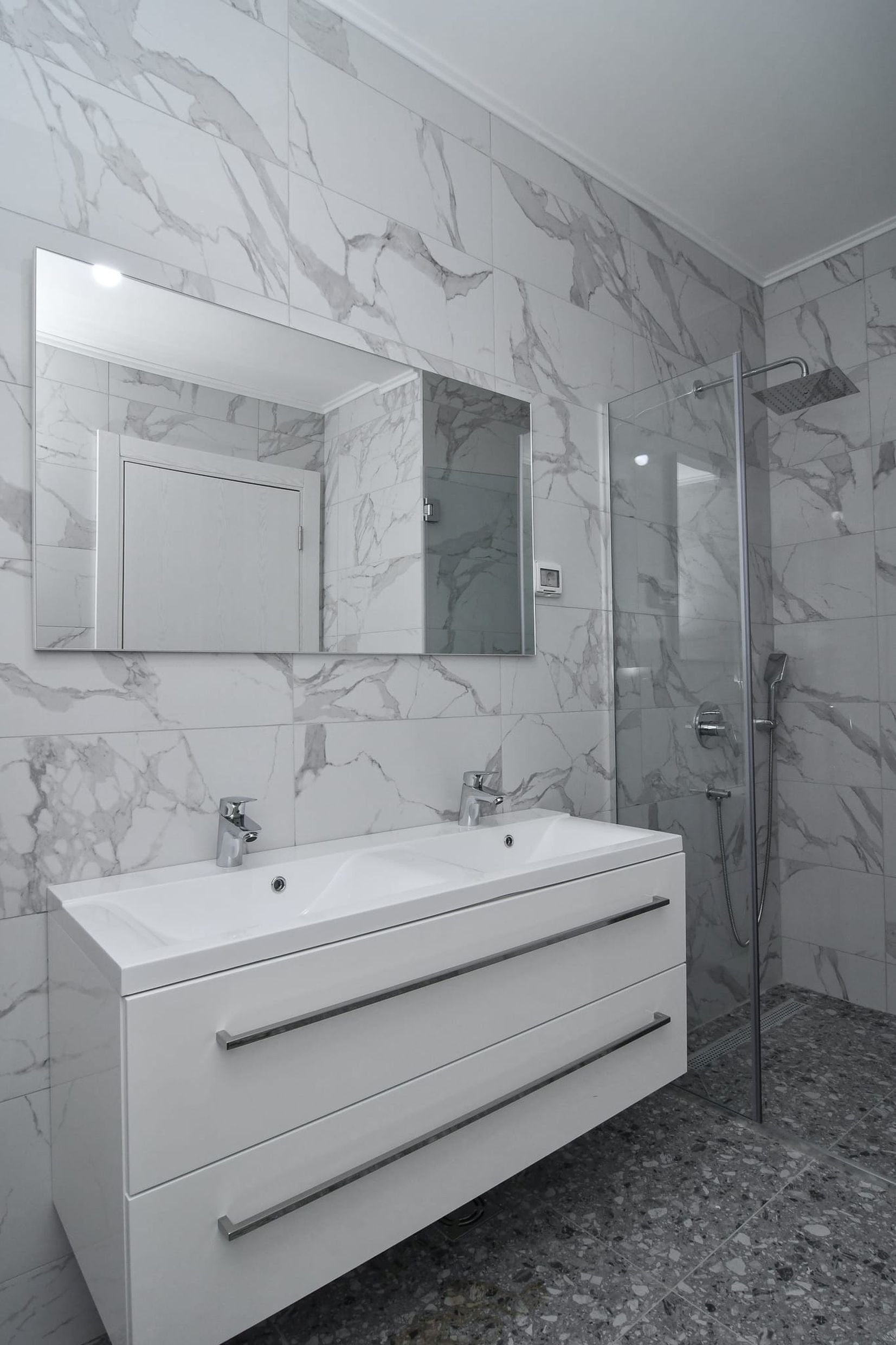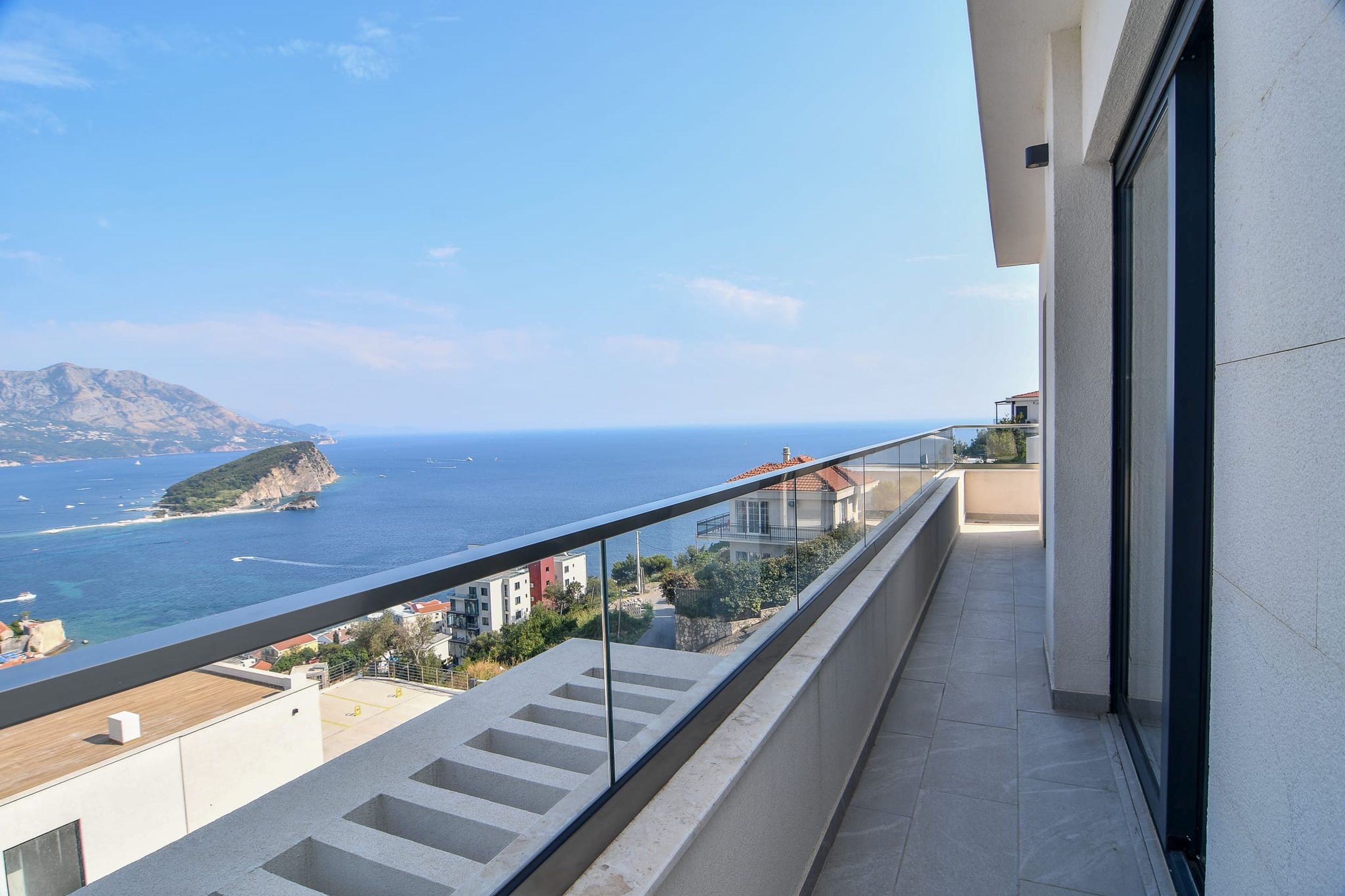 Приватный мастер-сьют с просторной ванной комнатой, гардеробной зоной и великолепной террасой 26 м², с которой открывается лучший вид на побережье Будванской ривьеры.