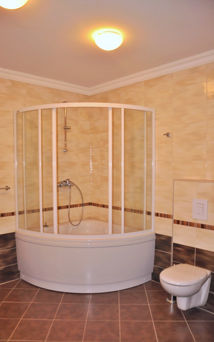 Дом трёхэтажный, жилая площадь 270 м2; меблирован дорого и стильно. На каждом из трёх этажей имеется большой балкон.