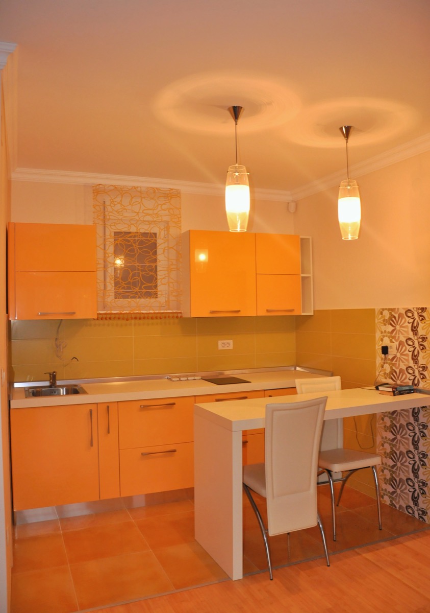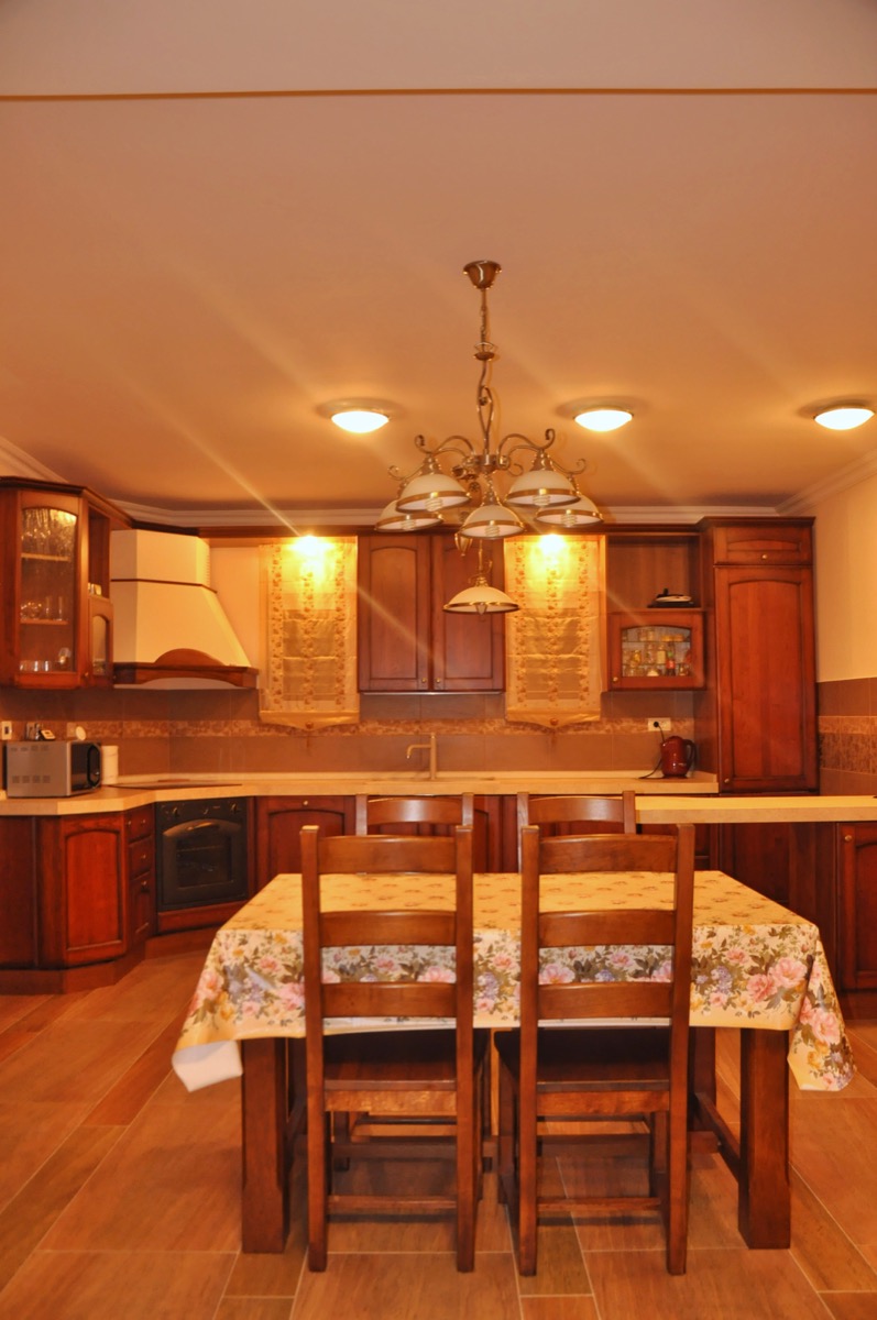 На первом этаже – располагается кухня с столовой с дубовой мебелью, с прямым выходом на террасу; гостиная, два больших санузла.