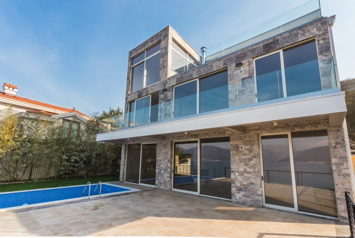Восхитительная современная вилла на первой линии! Вилла расположена на полуострове Луштица, в посёлке Крашичи. Удобное расположение, поблизости несколько прекрасных пляжей, а расстояние до аэропорта, Тивата, Котора или Будвы, займёт у вас не более получаса.