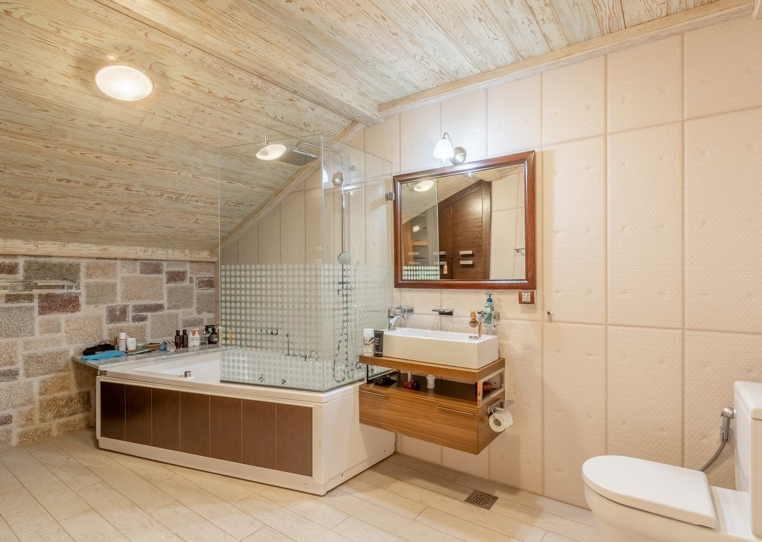 - Мансарда площадью 98м2 — спальня с ванной, кабинет