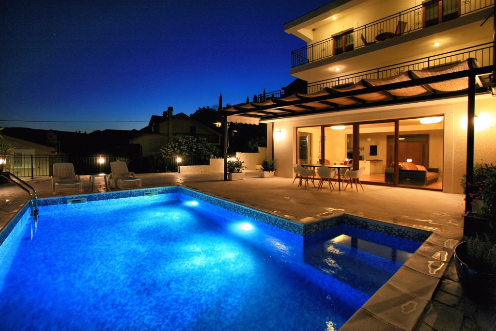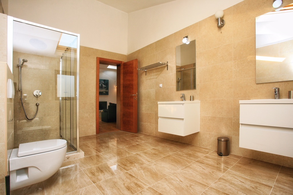 Кроме вышеуказанных уровней и помещений есть и полуподвальное помещение с бельевой, кладовкой, техническим помещением (солярный бойлер, гидрофор) и помещение для тренажерного зала, сауны и винного погреба. Весь участок отделен высокими стенами для сохранения приватности. Вилла смотрит в южную сторону, к морю и на солнце весь день. Со всех уровней участка вид на Боко-Которский залив.