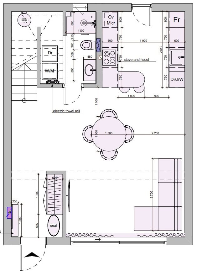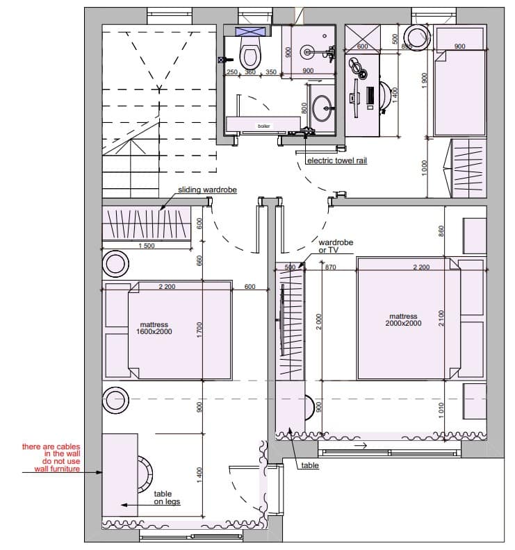 Все инженерные системы. Электрика по проекту, канализация, вода, бойлеры в санузлах, кондиционеры в гостиной и спальне, тёплый пол в санузлах и на кухне