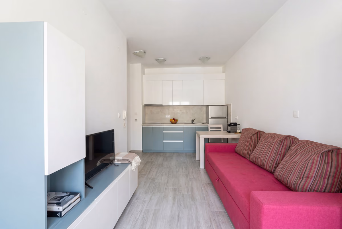 Апартамент расположен в Будве, район Экозаправки, рядом с Jadranski put. Это жилая часть города с удобным доступом к основной транспортной артерии и городской инфраструктуре. Район активно используется для проживания и аренды благодаря удобному расположению.