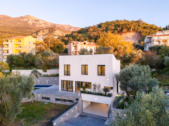 Nudimo na prodaju modernu vilu premium klase, smeštenu u jednom od najprestižnijih delova Budvanske rivijere — Kamenovo, svega minut hoda od plaže.